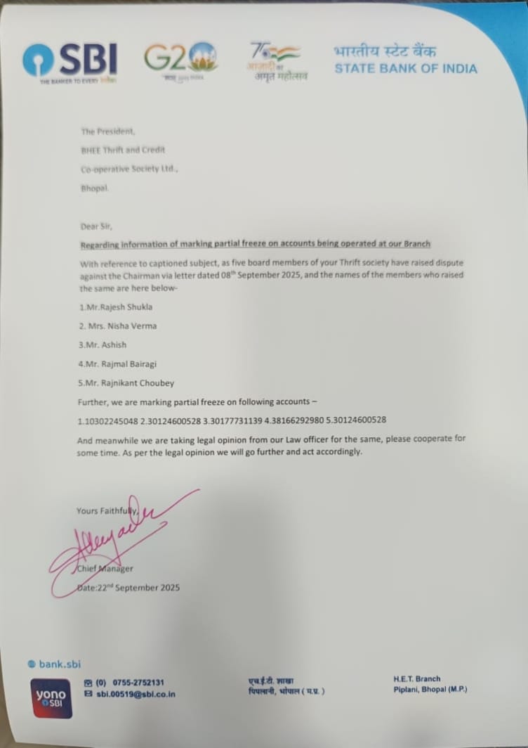 थ्रिफ्ट सोसायटी ने निभाया वादा, धनतेरस से पहले ही सदस्यों के खातों में पहुँचा डिविडेंड, सदस्यों में खुशी की लहर भोपाल। धनतेरस से पहले ही भेल कर्मचारियों की थ्रिफ्ट सोसायटी ने अपने वादे को निभाते हुए सभी सदस्यों के खातों में डिविडेंड जमा करा दिया है। इस वर्ष का लाभांश 16 प्रतिशत की दर से वितरित किया गया है। अध्यक्ष बसंत कुमार ने संदेश जारी करते हुए कहा— “जैसा हमने वादा किया था कि धनतेरस के दिन सभी सदस्यों के खातों में डिविडेंड पहुँचेगा, हमने एक दिन पहले ही भुगतान